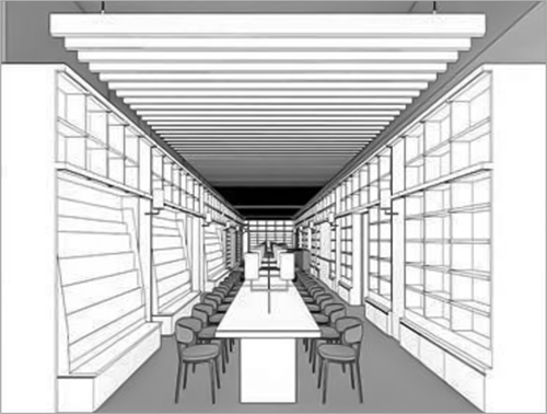 下面的设计包括书柜、桌子、天花板上的百叶窗和灯。我们把椅子排除在外,用灰色标明,并解释了排除的原因。这就扩大了保护范围,使之更容易证明侵权行为和计算损害赔偿。