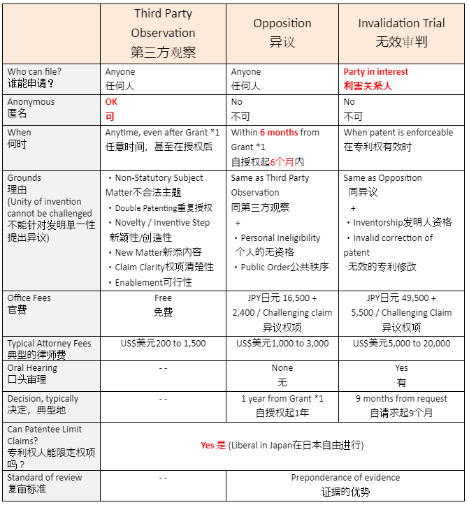Opposing Party对方当事人 JPO (Board Examiners委员会审查员) Patentee专利权人