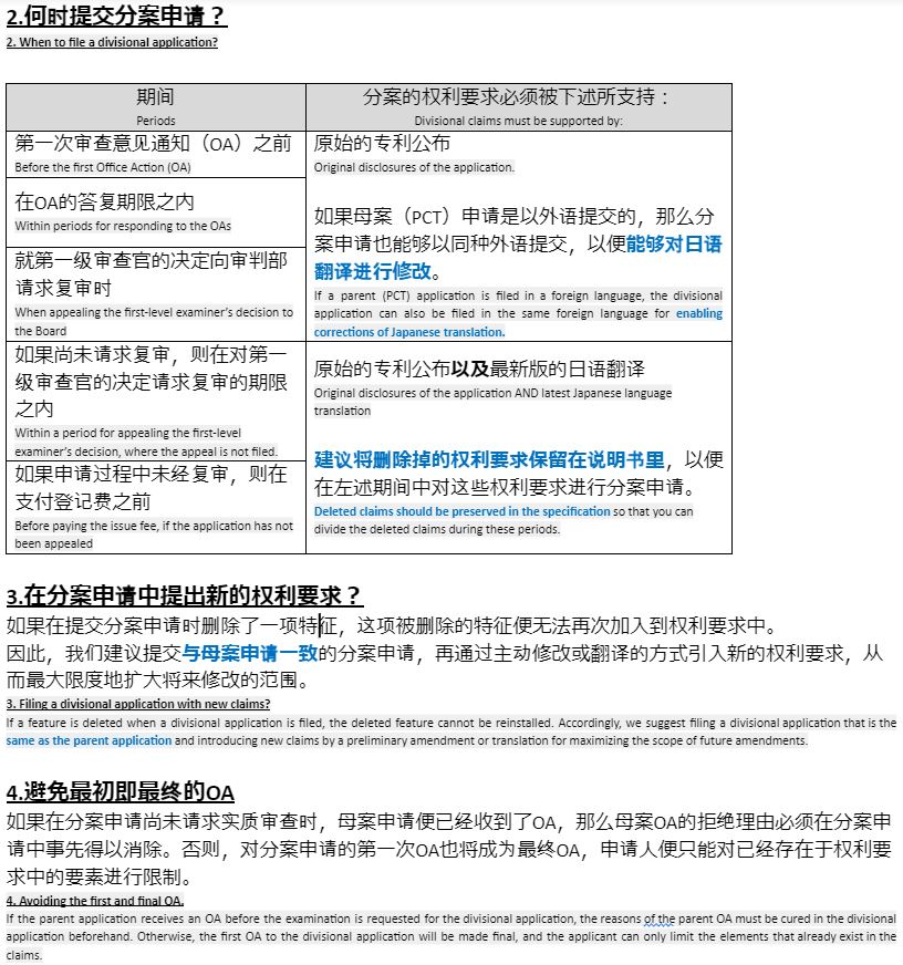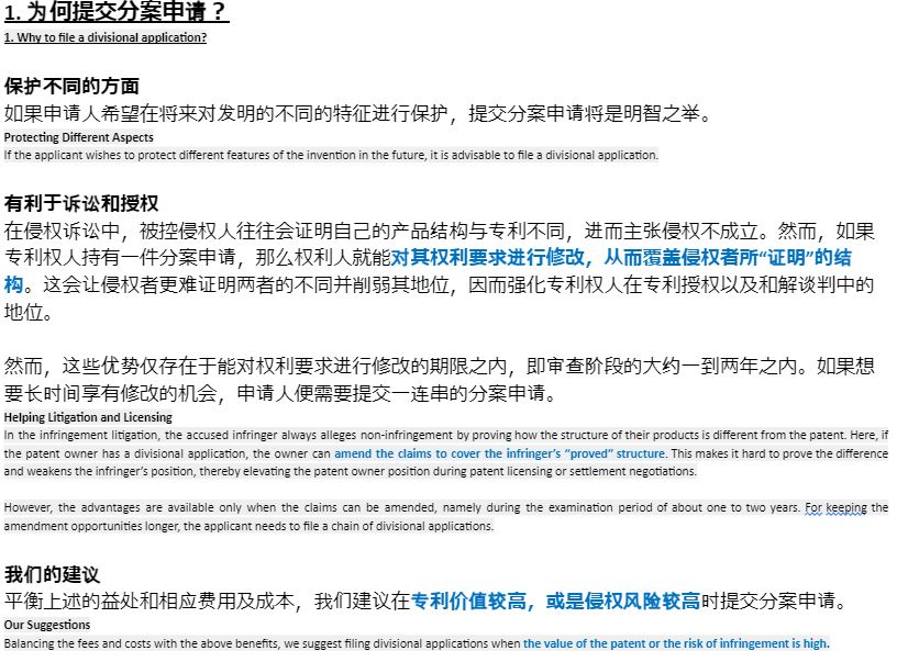 分案申请的优点和条件 Merits and Requirements of Divisional Applications