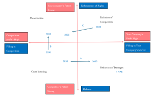 - the vertical axis: future patent strength balance between the applicant and competitors
