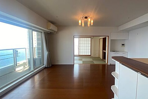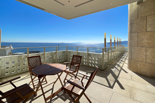 リビング正面と、サンビーチ方面の二面に海が広がり、海を眺めながら仕事ができます。