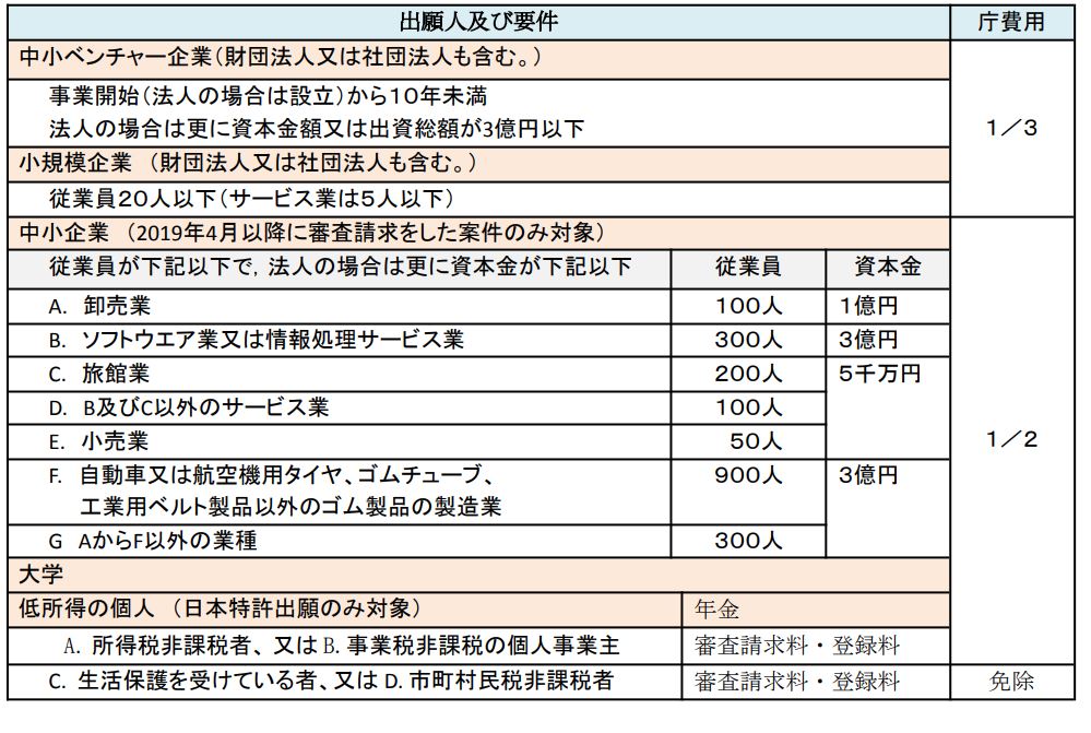 審査請求料、国際出願手数料等の減免 (2025/12/12更新)