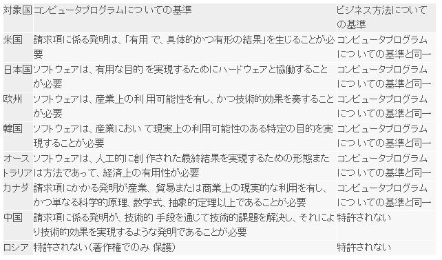 中国・ロシアをのぞきビジネス特許に コンピュータ プログラムと同一基準を適用する主用各国