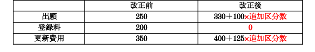 ・区分数が3以上の場合、改正法施行前に出願すると出願費用を抑えられます。
